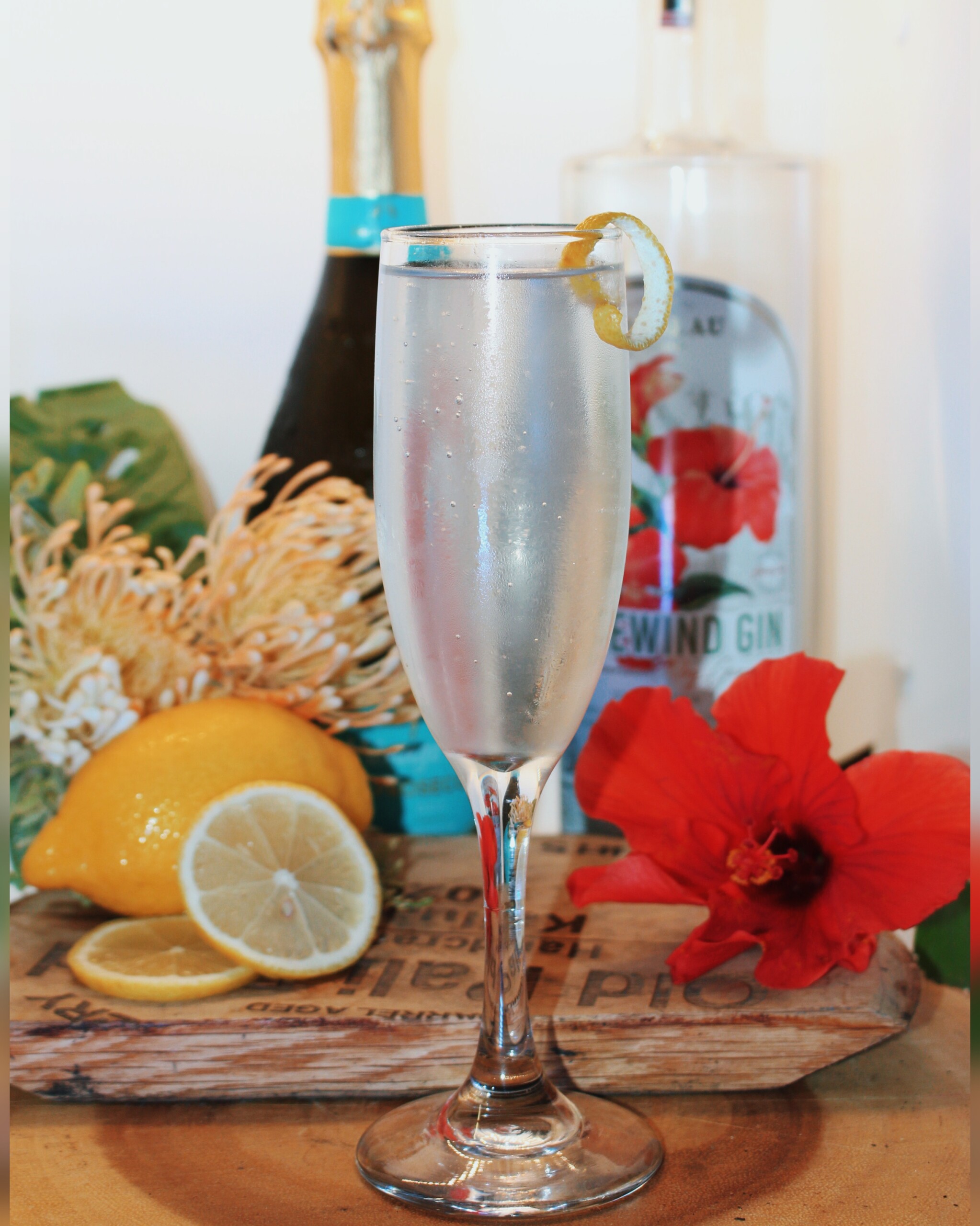 Morning drinking just isn’t the same without a bit of bubbles, and this simple yet sophisticated take on the French 75 showcases Ko‘olau Distillery’s new Tradewind Gin. Distilled in Kailua, this gin has a lot of tropical vibes with a taste that gives more citrus than the traditional botanicals. The Ali‘i Lavender Syrup used to add a touch of flavor and color comes from Pono Potions which makes an array of syrups from Hawai‘i-grown products; this lavender comes from Kula, Maui. The distillery is known for collaborating with fellow local producers, which allows them to craft their own twists on timeless cocktails.