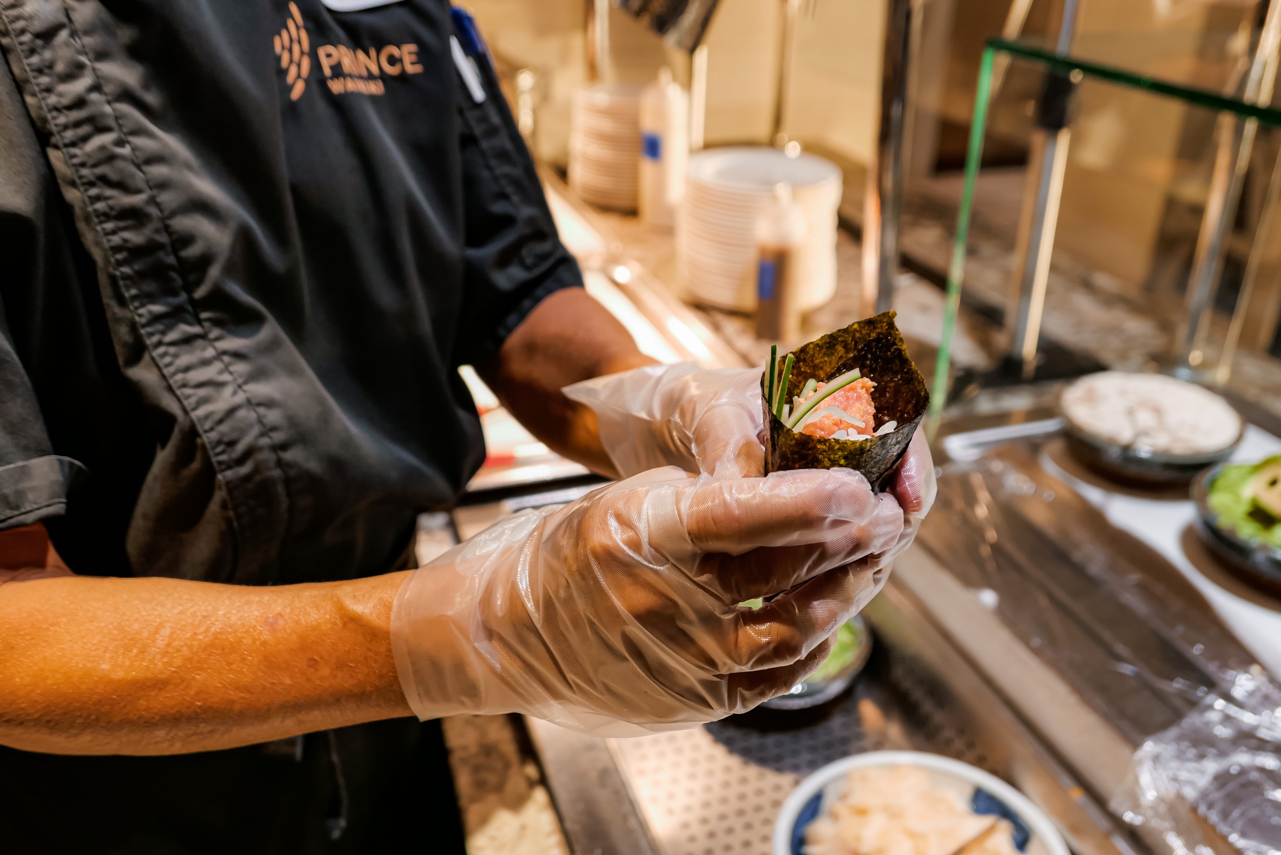 As good as the clam chowder is, you’ll want to save your appetite for the “Action Stations.” Located mere feet away from the tables, a blessing as the night goes on and your waistband expands, are a handful of chefs behind three countertops, all of which are protected by plexiglass barriers. Here is where the real action happens … hence the name. Want some slow-roasted prime rib? Ask the chef behind the counter and he’ll slice you off a piece, right then and there. Eyeing out that fresh poke, garnished with local veggies, chili peppers and house-made rice crackers? Same process, ask and you shall receive. From temaki sushi rolls to porchetta, bone marrow to Caesar salads, there’s enough variety in plates to satisfy any appetite. And although it’s not a self-service buffet, the folks behind the counter are fast and friendly, portioning out every plate with the perfect amount of food. Don’t worry, you can always ask for more.