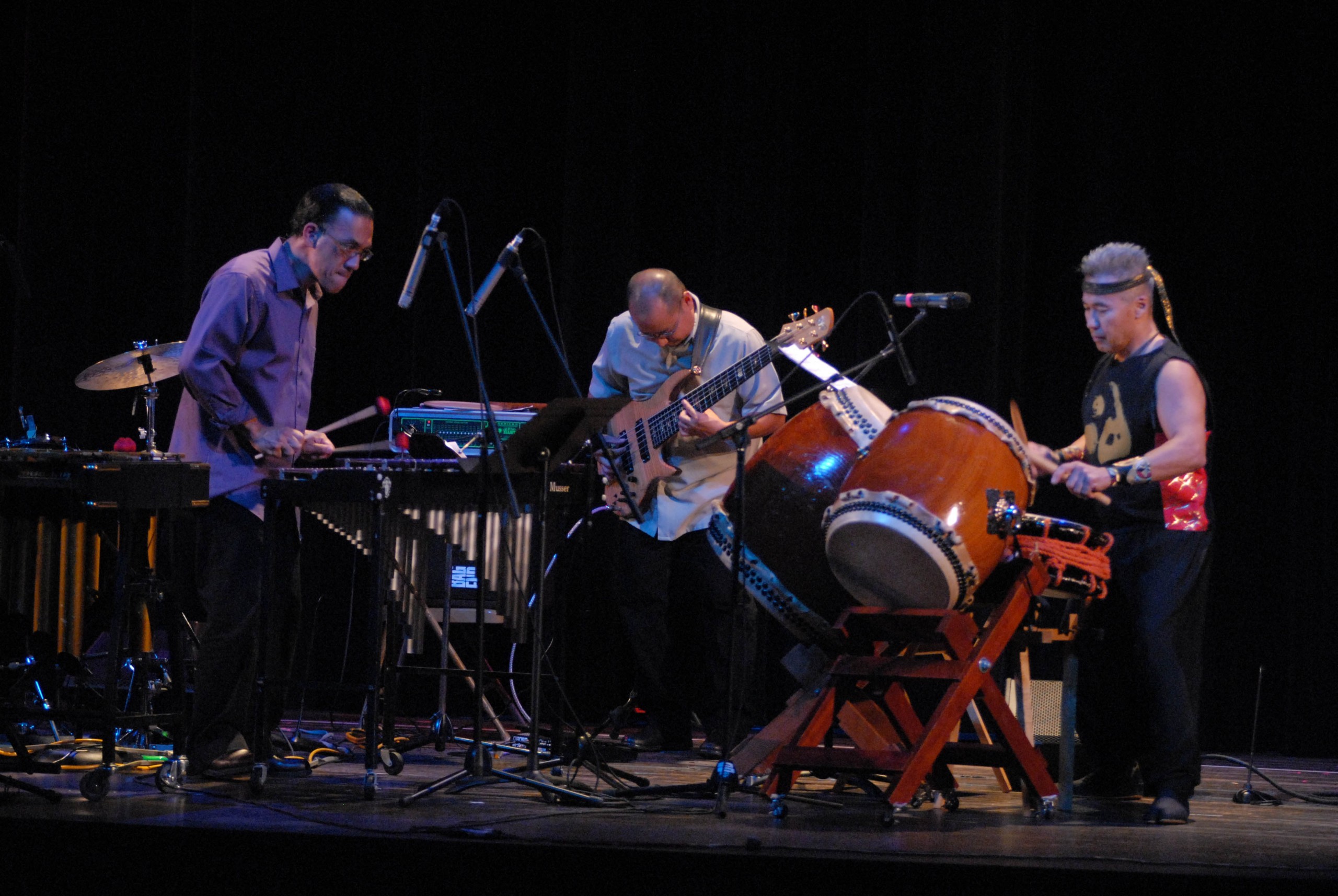 Growing up in Las Angeles, Endo was not exposed to a lot of Japanese culture in his early years, even though he came from a Japanese family which spoke Japanese within the household. “When I first heard taiko, I was a student at UC Santa Cruz and I heard the San Francisco taiko dojo and was shocked by the kind of impact it had on listeners,” says Endo, “that really appealed to me, the sound of the drum.” Already an experienced drummer, Endo had to make the decision on whether or not to move to New York and pursue a career in jazz drumming there, or move to Japan and study taiko in its home country. “I went to Japan in 1980, intending to stay for one year, and it ended up being ten years.”