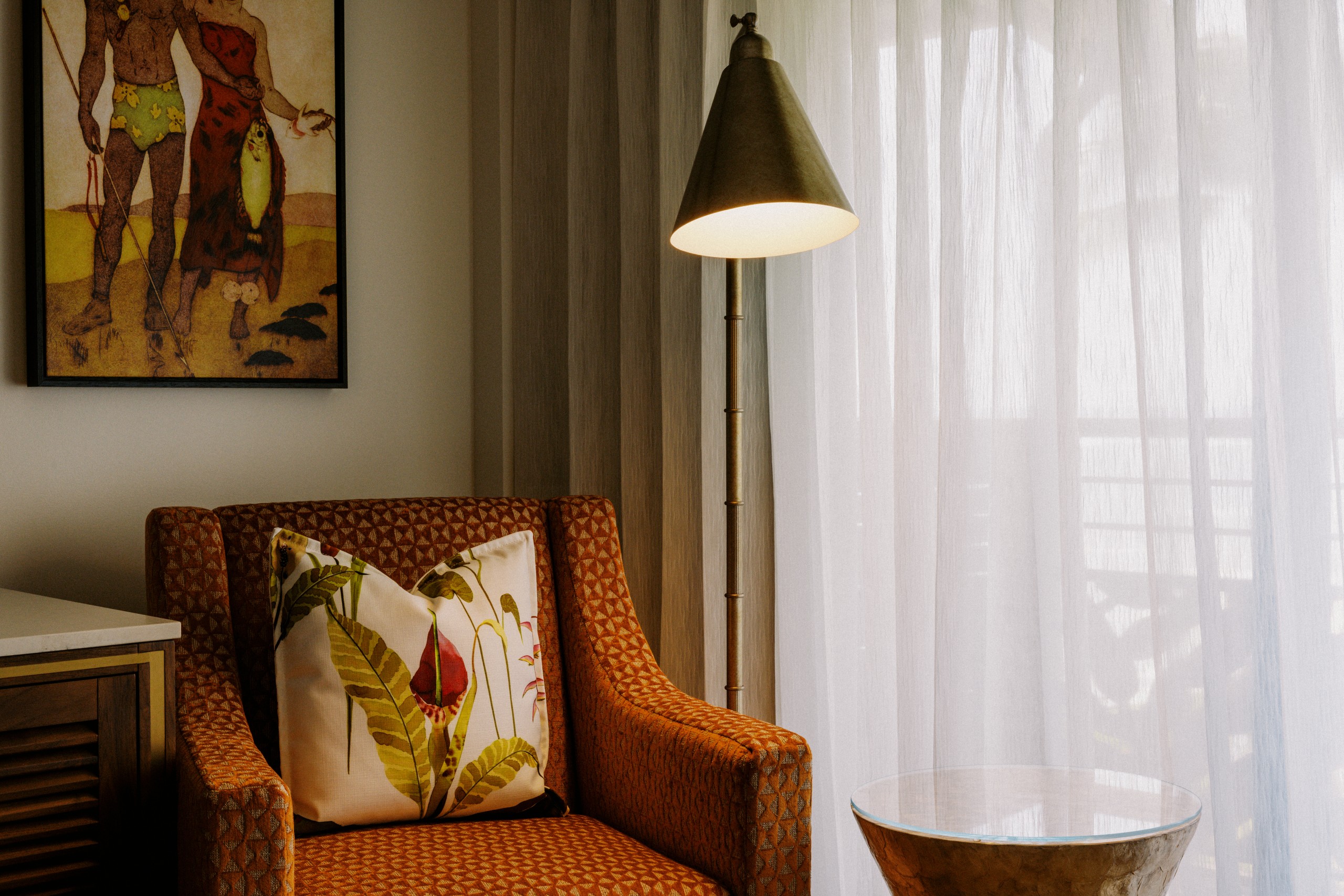 Each of the new guestrooms and suites features local materials and a fresh color palette nodding to Kaua‘i’s gardens, red earth and traditional Koa wood, considered sacred across the Hawaiian Islands for its ancient use. At the heart of the rooms is an artfully crafted headboard set in front of a tropical grass cloth paneled in coral and capiz shell insets, harkening back to the Koʻa Kea name (meaning “white coral” in Hawaiian). Guests will also enjoy works of art from Hawaiian natives and long-time admirers of the destination. Examples include Kapa cloth tapestries by local Dalani Tanahy, Polynesian-inspired lounge chair pieces by American painter and printmaker John Melville Kelly and sofa art by Shirley Russell, best known for her paintings of Hawai‘i.