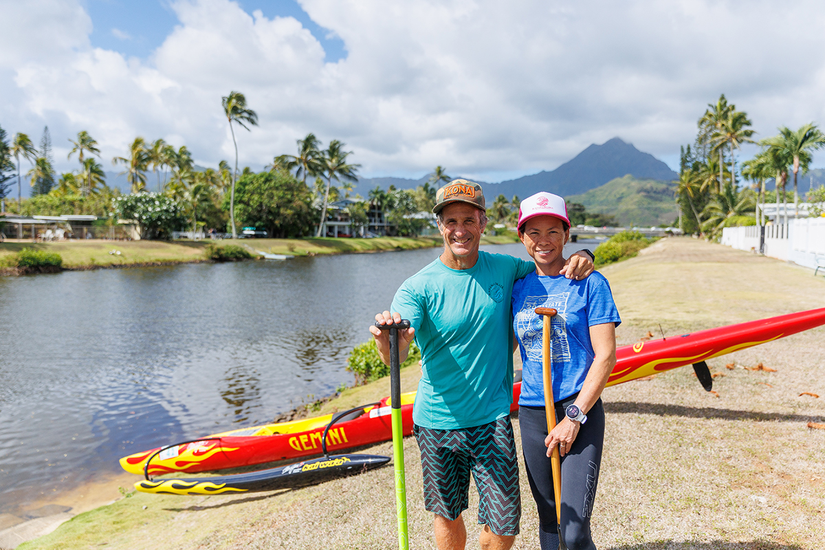 “Paddling is versatile. It’s family. It’s multigenerational. It’s international,” says Joey Foti, a member of Lanikai Canoe Club on O‘ahu’s Windward Side. She and her husband, Jim, are elite paddlers who help coach the kids at Lanikai. They also distribute boats for global canoe manufacturer Outrigger Zone and run the nonprofit Kanaka Ikaika Racing Association, which holds 14 races a year, predominantly for solo vessels like surfskis, one- and two-person canoes and stand-up paddleboards.