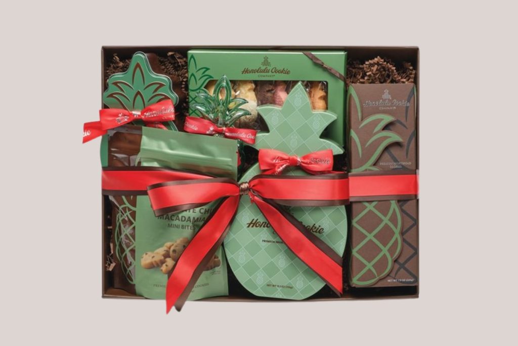 Since 1998, this family-owned company has shared the spirit of aloha through its iconic pineapple-shaped premium shortbread cookies. Inspired by the Islands and handcrafted with the finest ingredients, each cookie is beautifully packaged—perfect for gifting or enjoying yourself. From the Mele Pineapple Treasure Gift Tray to the Mele Peppermint Macadamia Mini Bites, Honolulu Cookie Company offers a sweet way to share the joy of the season.