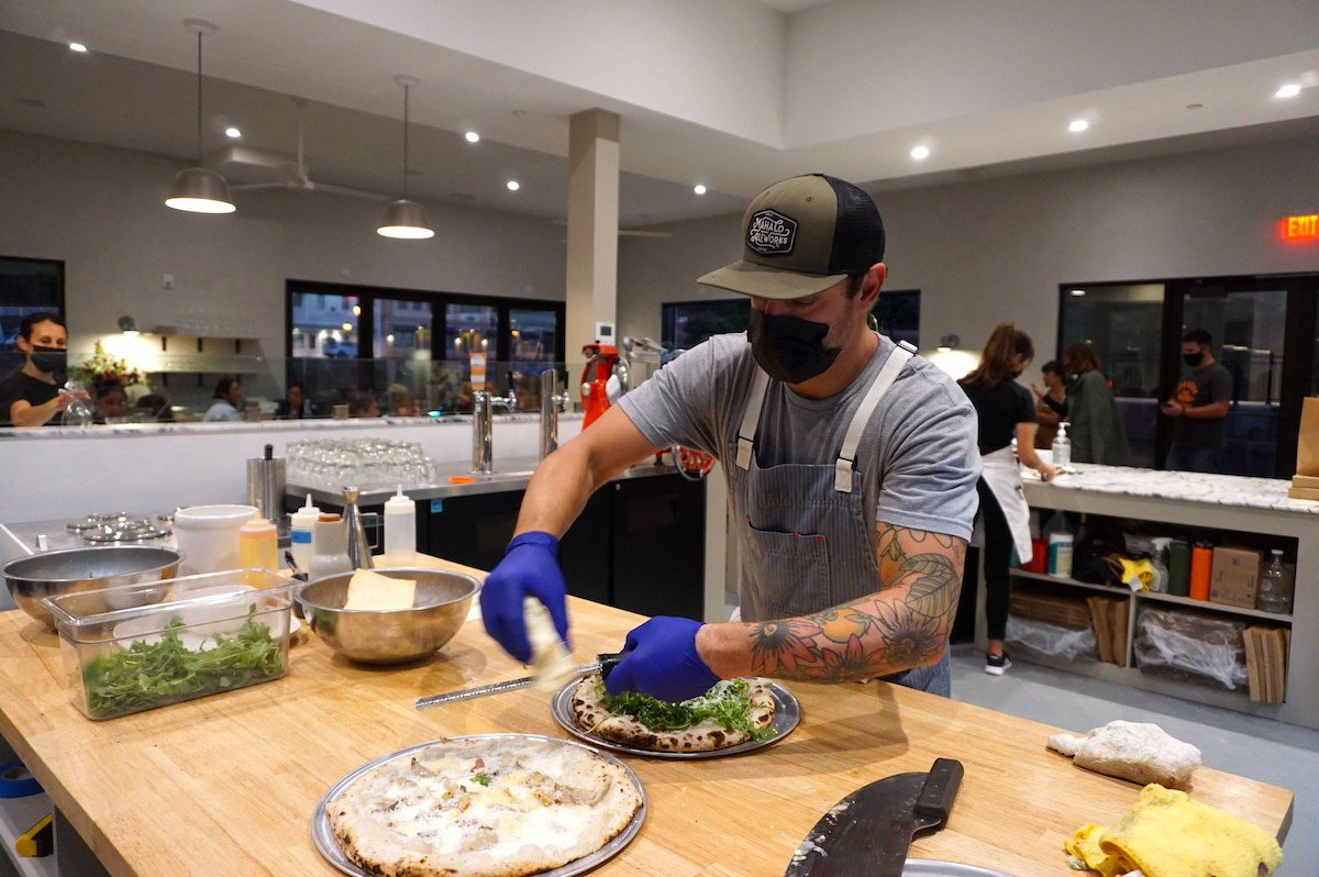Scheer’s familiarity with pizza fans took off during the pandemic, when he and his wife, Kaili, sold pizzas they made in their backyard wood-fired oven on Instagram. At that point Scheer had worked as executive chef at Travaasa Hana and The Mill House in Waikapū, which he transformed into a destination restaurant; he also had a high-end catering company. The Scheers were already planning to open their first restaurant, named after baby daughter Marlow. A neighborhood pizza place seemed like a natural.