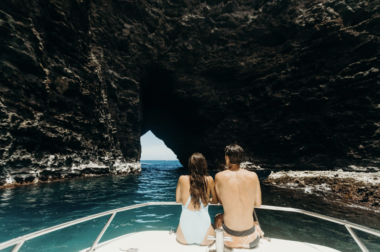 With its dramatic landscapes and quiet beauty, it’s no wonder couples can lose themselves against the backdrop of this gorgeous island. Whether you’re taking in the views at Waimea Canyon or testing your mettle hiking along the Nāpali Coast, there are so many spectacular things to see and do on Kaua‘i. If a hike isn’t on the agenda, you can hop on a helicopter or boat to explore the cliffs and caves of the Napali Coast on the island’s northern shoreline. For a truly memorable experience, float on a tube through caves, canals and chutes at an old sugar plantation with Kauaʻi Backcountry Adventures.